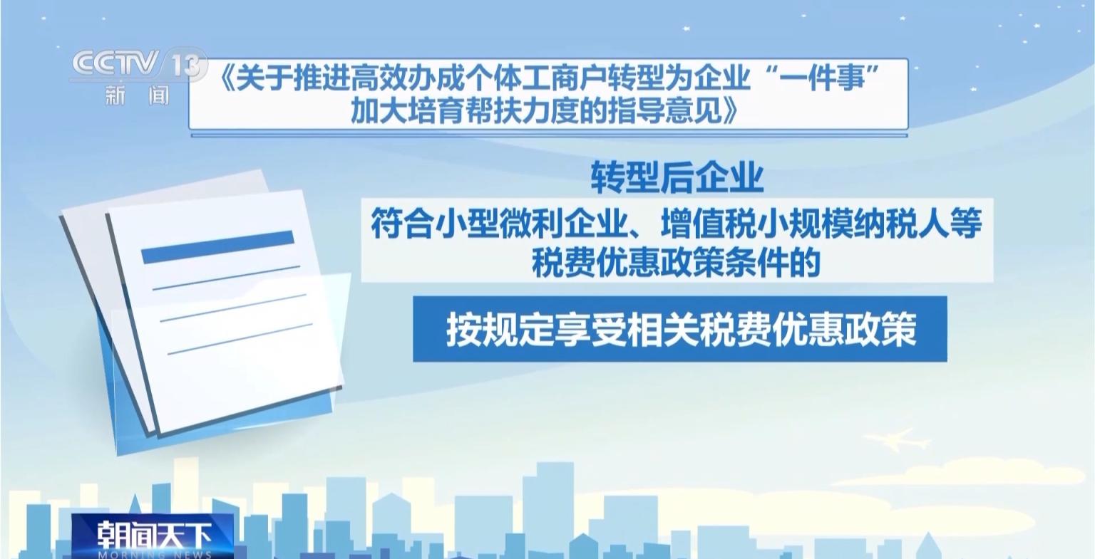 《指导意见》明确,降低“个转企”转换成本,实现接续办理涉企事项,加强涉税信息共享,延续有关行政许可,强化部门协同。
